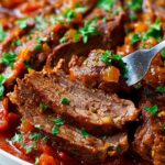 A simple and flavorful recipe for beef brisket cooked with braised onions, garlic, tomato paste, and carrots, resulting in a tender and savory dish perfect for family gatherings or special occasions.