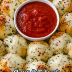 Cheesy Garlic Monkey Bread is a delicious pull-apart bread made with Rhodes frozen dinner rolls dipped in garlic butter and loaded with gooey mozzarella cheese. Baked until golden and bubbly, it’s perfect for sharing as a savory appetizer or snack alongside marinara sauce for dipping.