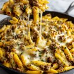 - Melt Cheese and Garnish: Sprinkle the remaining 1 cup mozzarella cheese on top of the pasta mixture. Cover the skillet with a lid to allow the cheese to melt. Garnish with additional chopped parsley before serving.