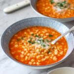 This comforting Pastina Soup features a vegetable-spiked chicken broth enriched with a parmesan rind, tiny pastina pasta, and garnished with fresh parsley and grated parmesan cheese. Perfect for a quick and cozy weeknight meal, it comes together in just 30 minutes using just one pot.