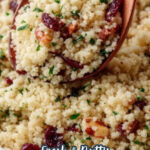 A vibrant and flavorful Cranberry Couscous Salad featuring toasted pecans, fresh herbs, and a sweet-tangy dressing, perfect as a refreshing side dish for poultry or pork meals.