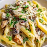 This Creamy Mushroom Chicken Pasta is a comforting one-pot meal featuring tender seared chicken thigh fillets cooked with garlic, brown mushrooms, and penne pasta in a rich, creamy parmesan sauce. Perfect for an easy yet flavorful dinner that combines simplicity with indulgence.