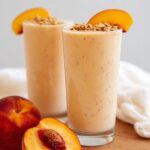 A refreshing and creamy Peach Smoothie made with fresh peaches, banana, skimmed milk, light coconut milk, Greek yogurt, and a touch of honey. Perfect for a healthy breakfast or a cooling summer snack.