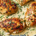 Creamy Pesto Chicken is a simple yet elegant dish featuring tender chicken cutlets simmered in a rich and silky pesto cream sauce. With just five ingredients, this recipe combines bright pesto flavors with luscious cream for a quick and satisfying meal perfect for any night of the week.