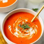 A rich and velvety homemade tomato basil soup made with crushed tomatoes, fresh basil, garlic, cream, and Parmesan cheese. Perfectly comforting and flavorful, this classic soup is easy to prepare and ideal for a cozy meal.