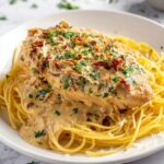 - Serve: Serve the creamy Tuscan chicken over your choice of pasta, rice, or potatoes for a complete meal.