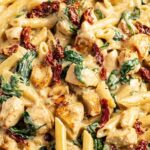 This Creamy Tuscan Chicken Pasta is a comforting one-pot dish featuring tender chicken breasts, al dente penne pasta, sun-dried tomatoes, baby spinach, and a rich creamy sauce made with heavy cream and Parmesan cheese. Bursting with Italian flavors, this easy-to-make recipe is perfect for a satisfying weeknight dinner.
