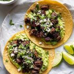 Delicious carne asada tacos made with marinated flank or skirt steak, grilled to perfection and served on warm corn tortillas with fresh onions, cilantro, cotija cheese, and lime wedges. Perfect for a flavorful Mexican dinner.
