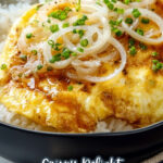 Oyakodon is a classic Japanese chicken and egg rice bowl featuring tender chicken thighs simmered with onions in a savory dashi-based sauce, topped with softly cooked eggs and fresh mitsuba parsley. This comforting one-pot meal is quick to prepare and perfect for a satisfying lunch or dinner.