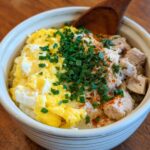 Oyakodon is a classic Japanese chicken and egg rice bowl featuring tender chicken thighs simmered with onions in a savory dashi-based sauce, topped with softly cooked eggs and fresh mitsuba parsley. This comforting one-pot meal is quick to prepare and perfect for a satisfying lunch or dinner.