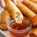 These Crispy Spring Rolls are irresistibly flavorful with a savory ground chicken and shiitake mushroom filling wrapped in thin, crispy spring roll wrappers. Perfectly fried for ultimate crispness or air fried for a lighter option, they come with a deliciously sweet and tangy dipping sauce made from honey, oyster sauce, Chinese mustard, Gochujang, and rice wine vinegar. Ideal as an appetizer or snack, these spring rolls are easy to make and impressive to serve.