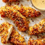 Everything Bagel Chicken Tenders are crispy, flavorful chicken tenders coated with a savory blend of everything bagel seasoning, paprika, and breadcrumbs, then baked to golden perfection. This dish offers a delicious twist on classic baked chicken tenders with a crunchy seasoned crust and juicy interior, perfect for a quick and satisfying meal.