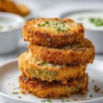 Fried Green Tomatoes are a delicious Southern classic featuring firm, unripe tomatoes sliced and coated in a seasoned breading, then fried to a crispy golden brown. Served with a zesty remoulade sauce, this snack is tangy, crunchy, and irresistible.