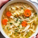 This homemade crockpot chicken noodle soup is a hearty and comforting recipe featuring tender shredded chicken, fresh vegetables, and wide egg noodles cooked slowly in savory chicken broth. Easy to prepare and perfect for a warming meal any day.