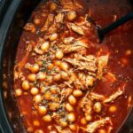 - Finish Cooking: Return the shredded chicken to the slow cooker. Add the drained and rinsed hominy along with the dried Mexican oregano. Cover again and cook for an additional 30 minutes to heat through and blend flavors.