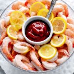 - Assemble and Serve: Arrange crushed ice on a platter, then place the shrimp and lemon wedges on top. Serve chilled with the cocktail sauce on the side for dipping.