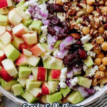 A vibrant and healthy Fall Chickpea Salad combining the sweetness of apple and dried cranberries with creamy avocado, crunchy nuts, and tangy feta cheese, all tossed in a zesty apple cider dressing. This salad is perfect for an easy fall lunch or dinner, offering a refreshing blend of textures and flavors.