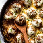 French Onion Meatballs combine tender ground beef meatballs with a rich, deeply caramelized French onion sauce topped with gooey Gruyere and mozzarella cheese. This comforting dish is perfect served with toasted bread or creamy mashed potatoes for a hearty meal.