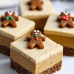 - Chill and Serve: Refrigerate the cheesecake for 2 hours to overnight before removing from the pan. Cut into 12 bars and garnish with mini gingerbread cookies or sprinkles as desired.