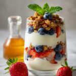 - Layer Parfait: Place half of the yogurt at the bottom of a mason jar or bowl. Top with half of the fruit and half of the granola.