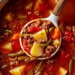Hearty and flavorful Cowboy Soup featuring ground beef, potatoes, carrots, and a medley of vegetables simmered in a savory tomato and beef broth, perfect for a filling meal in just 30 minutes.