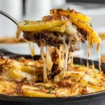 - Prepare Potatoes: Peel and slice the yellow potatoes into even slices. Layer them evenly over the cooked ground beef in the skillet or dish.