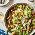 - Assemble the salad: Place the chopped romaine lettuce in a large salad bowl. Add half of the prepared dressing, half of the croutons, and half of the shaved Parmesan cheese. Toss gently to coat the lettuce evenly. Add more dressing if desired to taste, tossing until the salad is coated to your liking. Finish by topping with the remaining croutons, shaved Parmesan cheese, and a few grinds of black pepper for garnish.