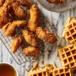 - Assemble and serve: Place waffles on plates, top with crispy fried chicken pieces, and drizzle generously with warm honey glaze. Serve immediately for best texture and flavor.