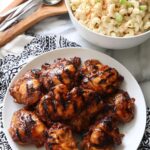- Grill the chicken: Place the chicken thighs on the grill and cook for 6-8 minutes per side, turning once, until the chicken is cooked through and reaches an internal temperature of 165°F. During the last few minutes of grilling, baste the chicken with the reserved marinade to create a flavorful glaze.