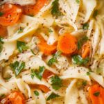 A warm and comforting Lemon Ginger Chicken Noodle Soup made with tender chicken breasts, fresh ginger and garlic, hearty vegetables, and broad noodles in a flavorful chicken broth enhanced with a bright splash of lemon juice. Perfect for a simple, cozy weeknight dinner filled with nutrients and delicious flavors.