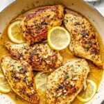 - Finish and serve: Return the chicken to the pan, spoon the lemon garlic butter sauce over the top, and garnish with fresh lemon zest. Add optional parsley and lemon slices for extra brightness and presentation before serving.