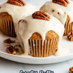 - Garnish and Serve: Place a pecan half atop each glazed muffin for garnish. Allow glaze to set briefly before serving.