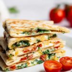 Mediterranean Quesadillas are a delicious and healthy twist on the classic quesadilla, featuring fresh tomatoes, spinach, red onion, and a blend of feta and mozzarella cheeses wrapped in burrito-style tortillas. Perfect for a quick lunch or dinner, this recipe combines fresh Mediterranean flavors with melty, cheesy goodness for a satisfying meal in just 15 minutes.
