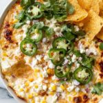 This Mexican Street Corn Dip (Elote Dip) is a creamy, flavorful appetizer inspired by traditional Mexican street corn. Made with low-fat cream cheese, tangy feta, spicy jalapeños, fresh lime juice, and plenty of cheese and corn, it's baked until hot and bubbly, delivering bold flavors in every bite.