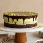 This No Bake Dubai Chocolate Cheesecake features a rich chocolate cookie crust, a crispy pistachio kataifi layer, and a creamy chocolate pistachio cheesecake filling topped with whipped cream. It is a luscious, no-bake dessert perfect for those who crave a decadent yet elegant treat with Middle Eastern flair.