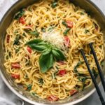 This One Pan Pasta recipe is a quick and flavorful meal that combines linguine with fresh cherry tomatoes, baby spinach, onions, garlic, and basil. Cooked in one pan with boiling water to create a delicious sauce, it's perfect for a simple yet satisfying dinner.