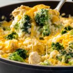 This One Pot Cheesy Chicken Broccoli and Rice Casserole is a comforting, easy-to-make meal combining tender chicken, nutritious broccoli, creamy cheese, and fluffy rice all cooked together in one skillet. Ready in just 30 minutes, it’s perfect for a wholesome family dinner with minimal cleanup.