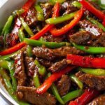 A quick and easy Pepper Steak Stir Fry featuring thinly sliced flank steak sautéed with red and green bell peppers in a savory soy-ginger sauce. This dish is flavorful, tender, and perfect for a satisfying weeknight dinner that rivals takeout.