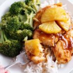- Bake chicken: Bake the chicken uncovered in the preheated oven for 20 minutes. During the last few minutes, baste the chicken by spooning the pan sauce over the pineapple to keep it moist and flavorful.