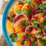 A refreshing Mediterranean Orange Salad featuring sweet Navel oranges, juicy pomegranate seeds, fresh mint, and a zesty honey-lime dressing with a hint of orange blossom water. This bright and flavorful salad is perfect as a light appetizer or side dish.