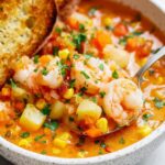 A hearty and flavorful Shrimp and Chorizo Chowder combining savory Spanish chorizo, succulent shrimp, and a smoky paprika-spiced broth. This easy-to-make chowder is perfect for a comforting meal served with toasted baguette slices.