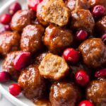 Slow Cooker Cranberry Jalapeno Meatballs combine spicy jalapeno-infused meatballs with a tangy-sweet cranberry and BBQ sauce for a festive and satisfying appetizer or main course. This easy recipe involves simply mixing ingredients and letting the slow cooker do all the work, delivering tender meatballs bursting with flavor.