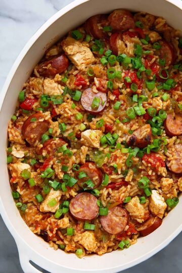 - Swap the meats: While the smoky sausage and chicken thighs bring great flavor and texture, I’ve also enjoyed this dish with just sausage or even shrimp added in the final 30 minutes of cooking for a seafood twist.