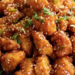 Sweet Chili Chicken features tender, bite-sized pieces of seasoned chicken breasts cooked to perfection and coated in a vibrant sweet and spicy sauce. This dish combines savory, sweet, and tangy flavors, making it an irresistible meal served over fluffy white rice and garnished with fresh green onions and sesame seeds.