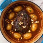 This Steakhouse Pot Roast with Blue Cheese Gravy is a hearty and flavorful dish featuring a tender slow-cooked chuck roast accompanied by Yukon gold potatoes, all smothered in a rich and creamy blue cheese gravy. Perfect for a comforting dinner that impresses with its depth of flavor and satisfying textures.