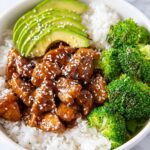 This Teriyaki Chicken and Rice Bowls recipe features tender boneless skinless chicken breast simmered in a quick homemade teriyaki sauce, served with crisp-tender steamed broccoli, creamy avocado slices, and cooked rice. It's a fresh, satisfying, and easy weeknight meal packed with balanced flavors and wholesome ingredients.