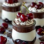 Delight in these decadent Black Forest Dessert Cups featuring layers of rich avocado chocolate mousse, dairy-free whipped cream, and both macerated and fresh sweet cherries. This vegan, dairy-free, and refined sugar-free treat is quicker and easier to prepare than the traditional Black Forest cake, with no baking required.